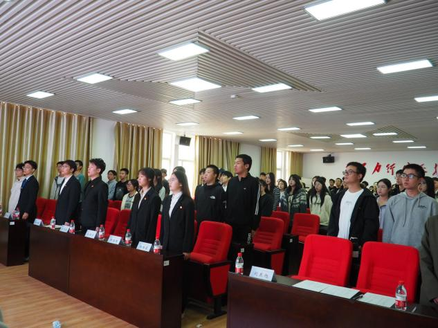 会议在庄严的团歌的歌声中拉开帷幕。全体参会人员起立,目光坚定,激昂的旋律不仅营造了庄重的会议氛围,更让团学干部们在歌声中重温初心使命,凝聚起为学院团学工作奋斗的共识。