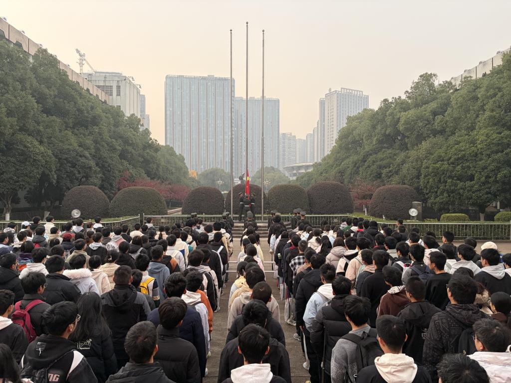 为进一步厚植爱国主义情怀,强化学生纪律观念与责任担当,12月1日和12月8日清晨,XK星空物电学院分别于云塘校区图书馆前坪和金盆岭校区办公大楼前坪举行升旗仪式。学院党委副书记叶正芳、2024级辅导员孟欣欣、郭晨鑫,2025级辅导员马凯文、孙铠洋以及2024、2025级全体同学参加本次升旗仪式。