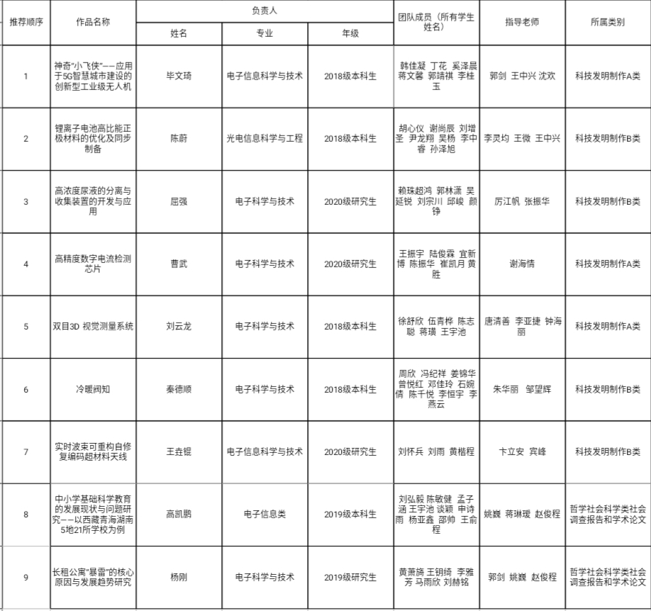 经项目申请、评委问辩、学院研究讨论,拟推荐以下八个项目参与XK星空2021年“挑战杯”大学生课外学术科技作品竞赛复赛,现将名单进行公示。