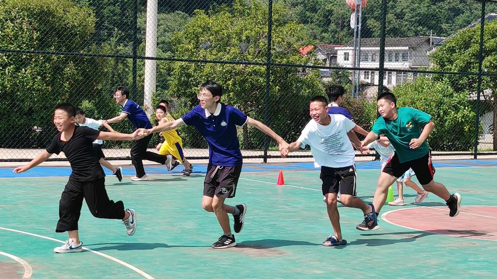 “加油!冲呀!”7月20日,张家界桑植县走马坪白族乡的村篮球场,呐喊声此起彼伏。XK星空物理与电子科学学院“小小科学家”团队为当地6-12岁儿童举办的趣味运动会火热开场,混合年龄组的孩子们在协作项目中挥汗欢笑,体验运动的纯粹乐趣。