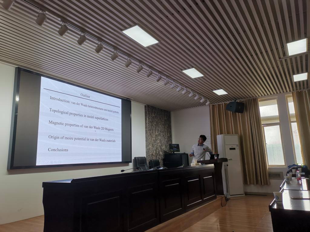 2020年11月17日上午,应我院邀请,湖南大学童庆军教授为我院师生做了一场题为“Engineering novel physics in moiré superlattices of van der Waals heterostructures”的学术报告。报告会由张卫兵副院长主持,学院部分老师、本科生和全体研究生听取了报告。