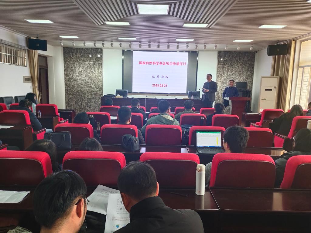 2023年2月21日下午,中南大学杜勇教授来我院作了一场国家自然科学基金申报探讨的学术讲座。讲座在理科楼B413学院大会议室进行,全院45岁以下青年教师和拟申报2023年度国家自然科学基金项目的共50余名老师参加,会议由张卫兵副院长(主持工作)主持。
