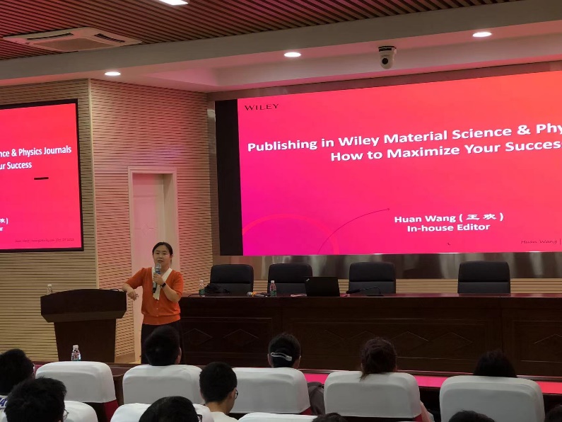 2023年10月23日下午,Wiley主编王欢来我院作了《Wiley物质科学期刊论文写作与发表》的学术讲座。讲座在理科楼A200会议室进行,学院部分本科生、研究生和教师参加,张卫兵副院长(主持工作)主持讲座。