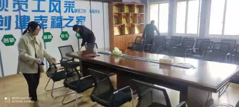 理科楼五楼是学院行政和各系的办公场所,在西边当头设置有教工之家活动室,里面还装有供老师和同学引用开水的饮水机。在专题学习结束后,大家从各自办公室拿出扫把、拖把、抹布、水桶,在C511教工之家、健身活动室开展了大扫除。老党员专职组织员陈光明同志身先士卒,俯下身子擦拭着一件件健身器材和办公家具,党办主任许孟良同志蹲下身去拔掉东头阳台上的一颗颗杂草,党委副书记宋国宁同志带领女党员把C511教工之家打扫的干干净净,院办主任张冬同志把饮水机擦得锃亮。年轻党员更是不怕苦不怕累,承担了扫地、拖地的重任。经过大家的齐心合力,五楼的环境变得更加干净明亮。