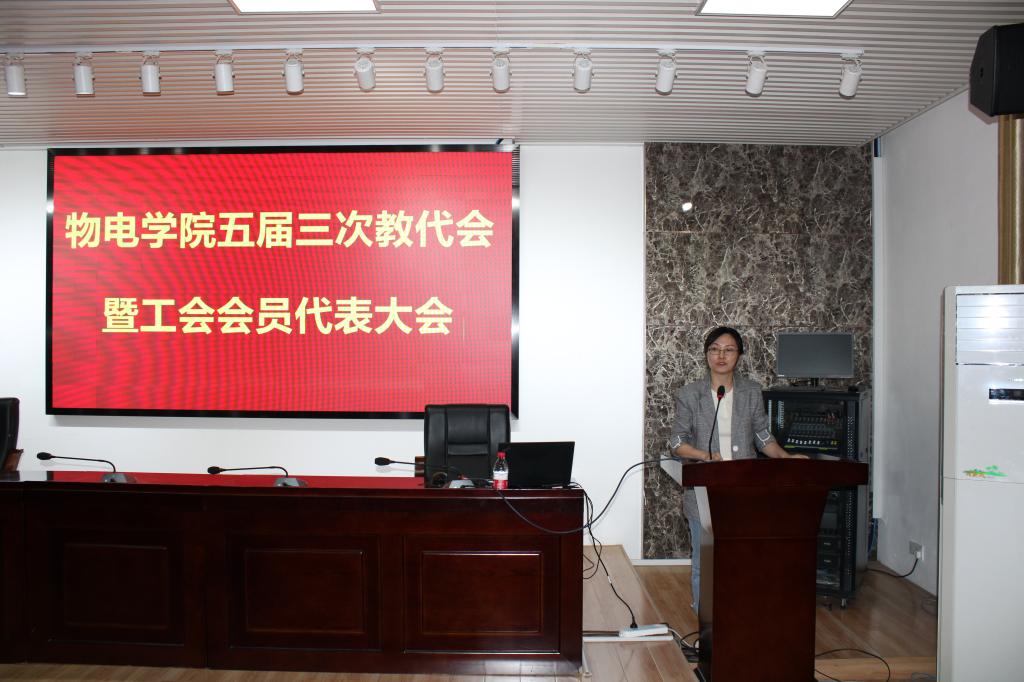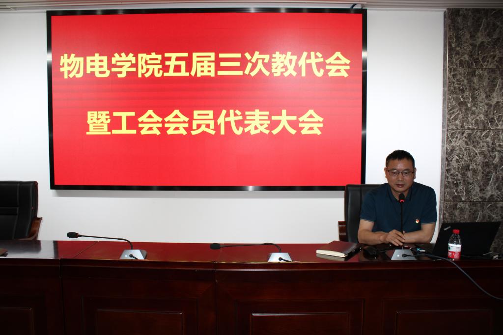 5月9日下午,物电学院在理科楼B413会议室召开了第五届三次教职工暨工会会员代表大会。学院以全体教师参加大会的形式来完成“双代会”职责,大会由院党委副书记宋国宁主持。