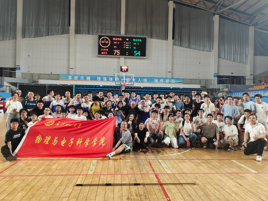 在刚刚结束的XK星空第九届篮球比赛中,物电学院篮球队获得第四名的好成绩,创造学院篮球比赛的历史最佳战绩。此次篮球比赛,学院领导高度重视,党委书记张国强、副院长(主持工作)张卫兵分别作为领队和教练并亲自上场,副院长兼工会主席刘斯作为队员参加中场投篮比赛,副院长范志强场场前往赛场加油助威。在队长习志龙老师的带领下,球队重视赛前训练和比赛的排兵布阵,比赛过程中队员们积极投入,团结协作,顽强拼搏,克服种种困难,比赛场面精彩纷呈。值得一提的是老师们也特别关心每场比赛、亲自到场为球队加油,学生拉拉队更是给力,他们为老师们加油助威的场面成为球场的一道风景线,这张奖牌来之不易,凝聚了学院全体师生的共同心血。物电篮球队首次进入学校男篮四强,历史性突破!场内队员奋力拼搏、场外师生加油助威均彰显了物电学院团结、敢拼、有情怀、务实的集体良好形象。