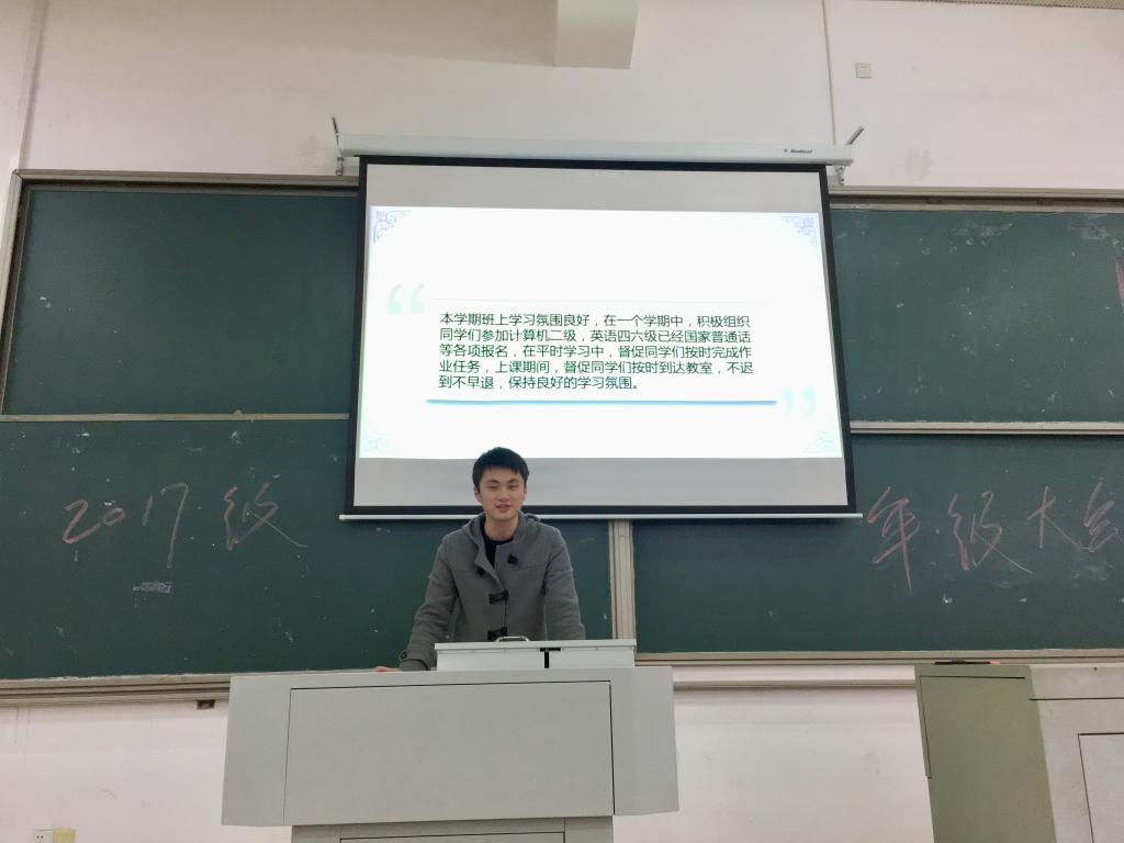 1月7日下午,物电学院在宗教楼B202举行了17级大二上期末总结大会,17级全体同学出席了本次活动,活动由辅导员赵俊程主持。