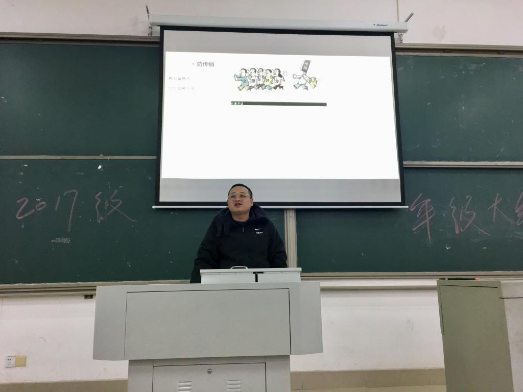 首先,17级各班班长对本学期班级的学习以及活动进展做了详细的报告,比如电信3班的班长谭馨,把本学期班级的四六级过级率,二级计算机通过率数据进行了收集,以便更好地了解同学们的学习情况。而光电2班的班长则和各班委一起,对本学期的各个方面的活动进行了总结,对同学们学习以外的生活有一个大致的了解,在一定程度上增强了班级的凝聚力。之后,辅导员赵俊程上台,千叮咛万嘱咐同学们寒假安全注意事项:检查电闸、水闸关闭;防风、防火、防盗;严禁外宿、谨防传销与校园贷;食品安全与放假外出游玩安全事宜,并对之后的放假安排做了详尽的规划,布置了目标规划的寒假作业。