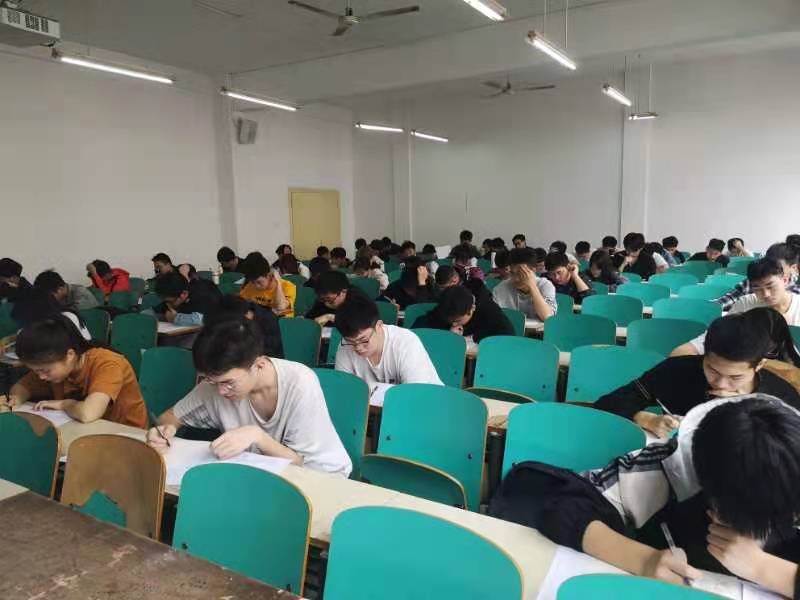 本次物理竞赛参赛对象为全校理工本科学生,通过近一个月的宣传动员和组织报名,共有1077名学生报名参赛,其中本部大学物理课程类学生705名,本部普通物理课程类学生365名,城南学院学生7名。竞赛分2个校区进行,云塘校区参赛学生570人,金盆岭校区参赛学生507人。