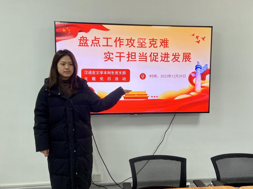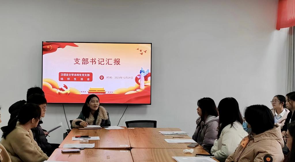 组织生活会上,各学生党支部书记汇报了过去一年来支部的工作情况,表示支部各项事务有序进行,新同志的加入给支部带来了更多的活力。但是也指出了在工作中暴露出来的问题,如支部活动特色不够鲜明等。其中汉语言本科生党支部书记李敏同志表示,希望在新的一年里同志们都要主动出击,以经验分享为基础,全面打通交流障碍,增进支部感情;在支部活动建设方面要开拓思维,结合专业特色,更好地发掘特色鲜明、参与度高、影响广泛的主题党日开展方式。