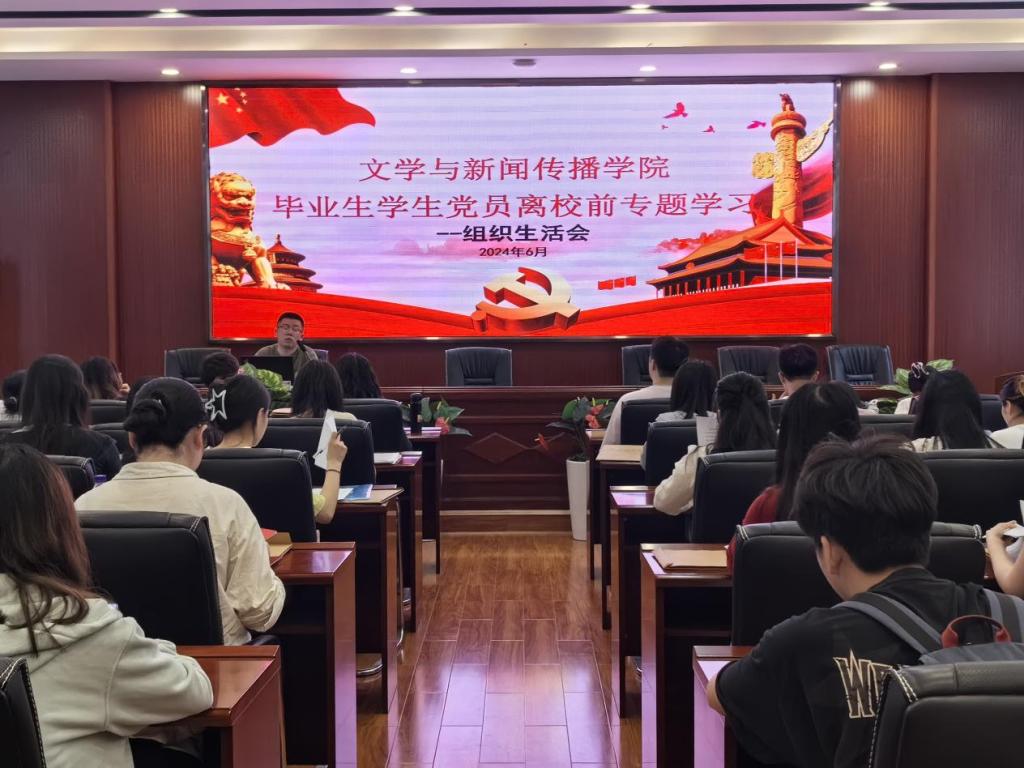 为进一步加强毕业生党员教育管理,提升毕业生党员党性修养,文学与新闻传播学院于6月4日在文新学院九教218会议室召开2024届毕业生党员组织生活会,学生党总支副书记陈鑫宇老师主持会议,全体毕业生党员出席会议。