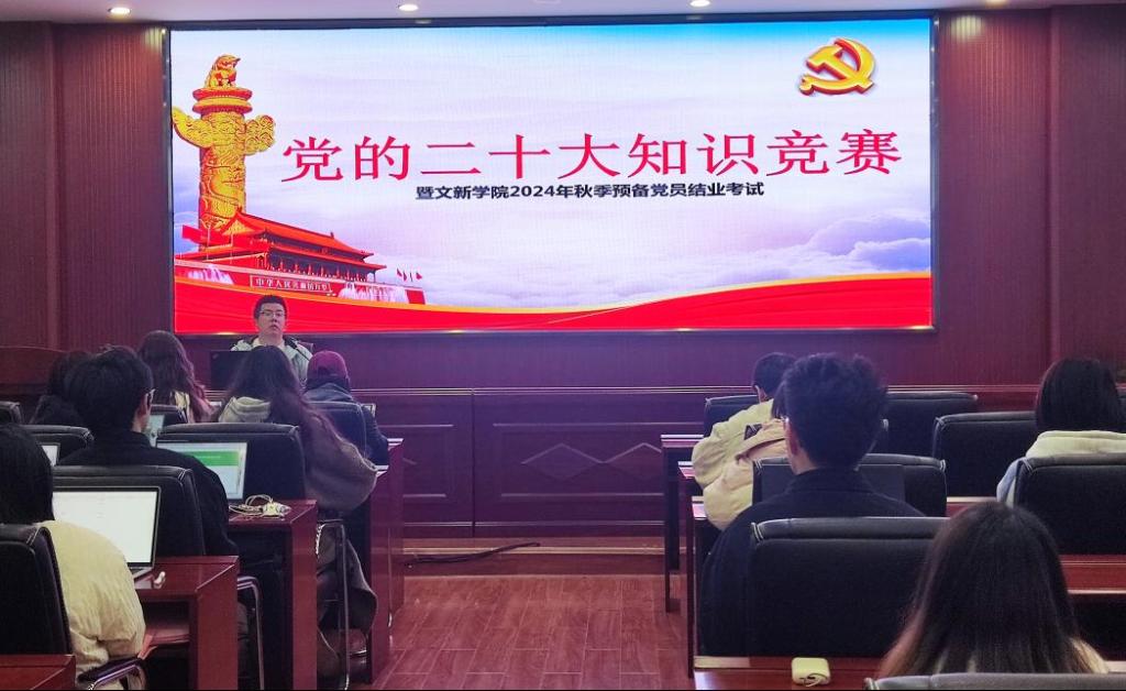 为贯彻落实党的二十大精神,积极探索“党建+互联网”新模式,进一步提升预备党员的理论知识水平,11月20日12时15分,“党的二十大知识竞赛暨文新学院2024年秋季预备党员结业考试”于XK星空金盆岭校区九号教学楼218室成功举行。