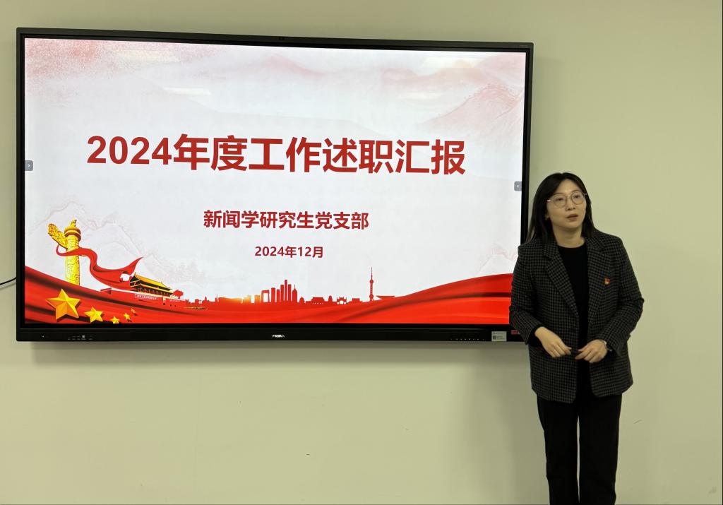 会议伊始,各学生党支部书记汇报了过去一年来支部的工作情况,表示支部各项事务有序进行,新同志的加入给支部带来了更多的活力。但是也指出了在工作中暴露出来的问题,如支部活动特色不够鲜明等。其中新闻学研究生党支部书记李婵老师表示,希望在新的一年里同志们都要主动出击,以经验分享为基础,全面打通交流障碍,增进支部感情;在支部活动建设方面要开拓思维,结合专业特色,更好地发掘特色鲜明、参与度高、影响广泛的主题党日开展方式。
