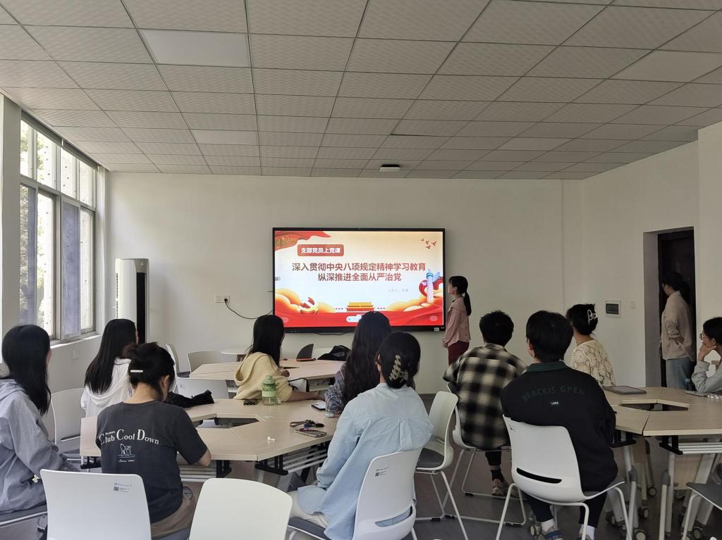 讲好“一课”,理论基础更扎实。新闻学本科生党支部罗婧同志以微党课的形式,强调了加强党员们党性修养和纪律意识的重要性,有效推动纪律建设在支部内走深走实。中国语言文学研究生党支部谭雨欣同志表示,作为一名党员,我们要时刻绷紧纪律之弦,以更高的标准严格要求自己,切实将中央八项规定精神落到实处。