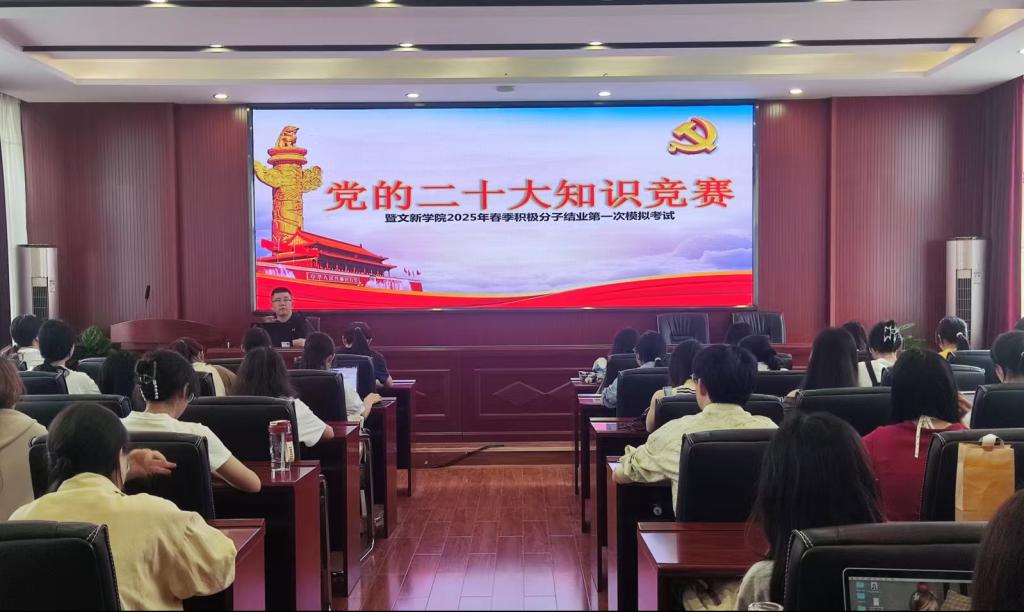 为贯彻落实党的二十大精神,积极探索“党建+互联网”新模式,进一步提升积极分子的理论知识水平,5月16日12时10分,“党的二十大知识竞赛暨文新学院2025年春季积极分子第一次模拟考试”于XK星空金盆岭校区九号教学楼218、223室成功举行。