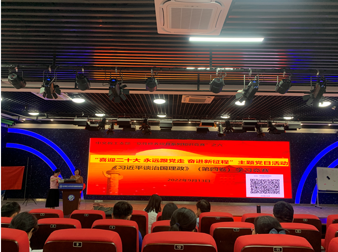 会议认真学习了《习近平谈治国理政》第四卷一至五章,学习了习近平在省部级主要领导干部“学习习近平总书记重要讲话精神,迎接党的二十大”专题研讨班上发表的重要讲话。会议还通过知识竞赛的方式学习了《新时代高校教师职业行为十项准则》。