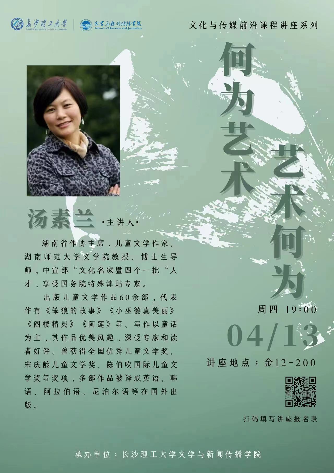汤素兰,湖南省作协主席,儿童文学作家、湖南师范大学文学院教授、博士生导师,中宣部“文化名家暨四个一批“人才,享受国务院特殊津贴专家。