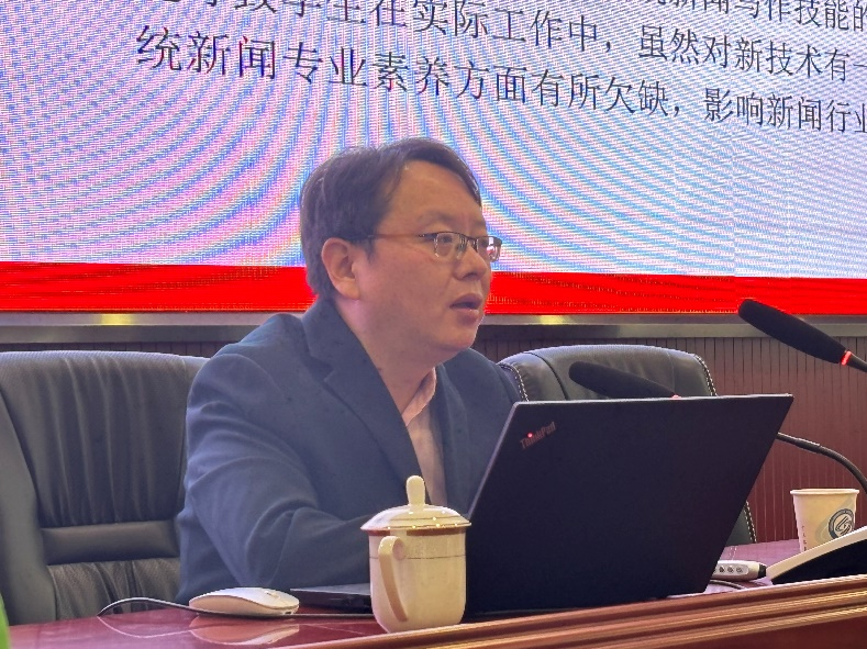 “数据大模型对传统新闻写作在速度与时效性竞争、内容生产效率冲击等方面带来了挑战与威胁,如何使用大模型对于新闻人来说尤为关键”,2024年10月26日下午,XK星空客座教授、新闻传播专业研究生校外导师、资深媒体人陈安庆为新闻传播专业研究生做了一场主题为《ChatGPT大模型时代传统媒体新闻写作的挑战与转型:前沿洞察、实践方略与创新路径》的新闻传播前沿讲座,为同学们打开了一扇了解新闻写作新领域的窗户。陈安庆教授曾任新华网湖南频道副总编、银川晚报社副总编等职务,是中国第一代调查记者的代表性人物,南方传媒书院创始人,其丰富的媒体从业经验和深刻的行业洞察为本次讲座增添了浓厚的学术氛围。
