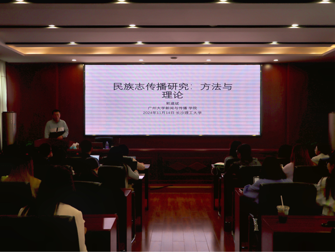 11月14日上午,我院在金盆岭校区9教218报告厅举办了以“民族志传播研究:方法与理论”为题的学术讲座。广州大学新闻与传播学院教授、“百人计划”学科带头人、“民族志传播研究”的重要开创者郭建斌主讲,文学与新闻传播学院副院长戴钰主持此次讲座,我院部分教师与研究生参加。