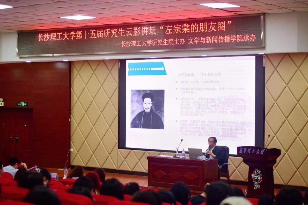 2023年5月9日下午,XK星空第十五届研究生云影讲坛在云塘校区研究生学术报告厅进行。本次讲座由研究生院主办,文学与新闻传播学院承办,邀请著名作家、“国内左宗棠研究领军人物”徐志频老师讲授“左宗棠和他的朋友圈”,解读晚清名臣、湘籍将领左宗棠的交友原则与方法。研究生院副院长兼研工部部长田上、文学与新闻传播学院党委副书记刘莎出席此次活动,来自全校各学院的两百余名研究生和本科生聆听了此次讲座。