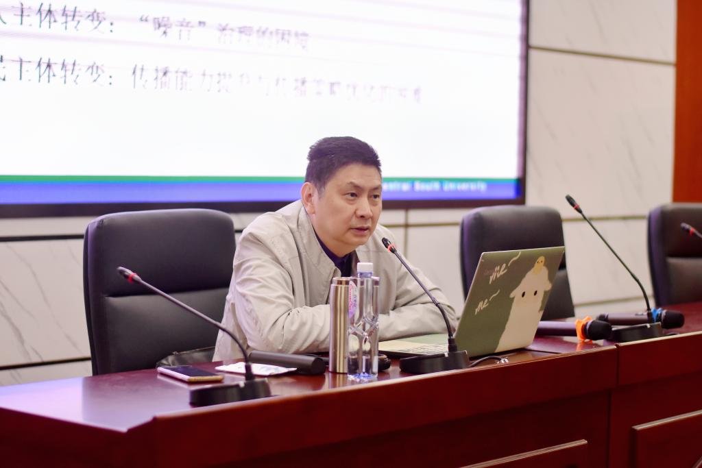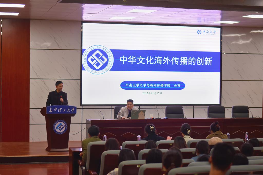 2022年11月17日下午,第十四届研究生云影讲坛文学与新闻传播学院分论坛第三期在XK星空金盆岭校区四号教学楼学术报告厅举行。中南大学文学与新闻传播学院院长白寅教授为我院师生开展主题为“中华文化海外传播的创新”的讲座。