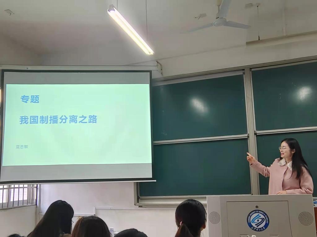 12月3日上午,文学与新闻传播学院新闻系副教授夏忠敏博士在文科楼举办了一场以“我国制播分离”为主题的专题讲座,为2019级新闻系的同学们梳理了我国广播电视行业对制播分离制度的探索、发展与展望。专题讲座每个学期都会有两场,已经是新闻系的传统活动。专题讲座活动的目的就是通过多种形式的教学丰富课堂教学内容,带动同学们学习兴趣,助力同学们从多个角度理解新闻学传播学知识。