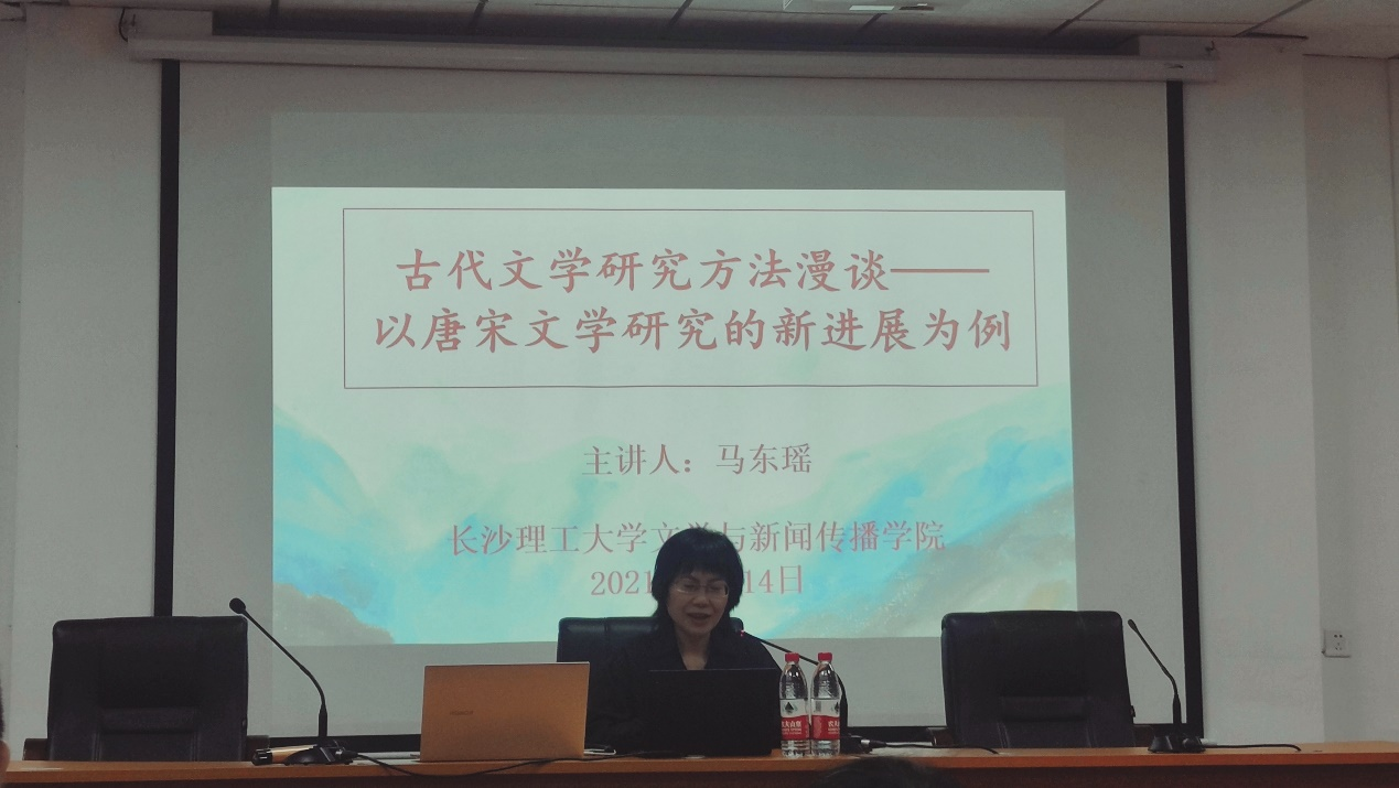 2021年5月14日下午2时30分,北京大学中文系博士、历史系博士后、北京师范大学文学院教授、博士生导师、文学院副院长马东瑶教授受XK星空邀请,在金盆岭校区2教101教室进行了以“古代文学研究方法漫谈——以唐宋文学研究的新进展为例”为主题的学术讲座。讲座由文新院郑劭荣教授主持,来自文新院各级研究生、老师参与此次讲座。