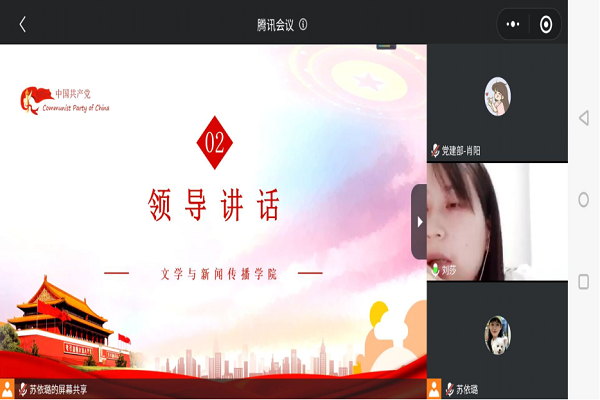 4月14日晚7点,文学与新闻传播学院以线上方式举办本学期入党积极分子、发展对象、预备党员培训班开班仪式。学院党委副书记刘莎、党建辅导员楚艳鸽以及全部学员参加本次开班仪式,仪式由苏依璐同志主持。