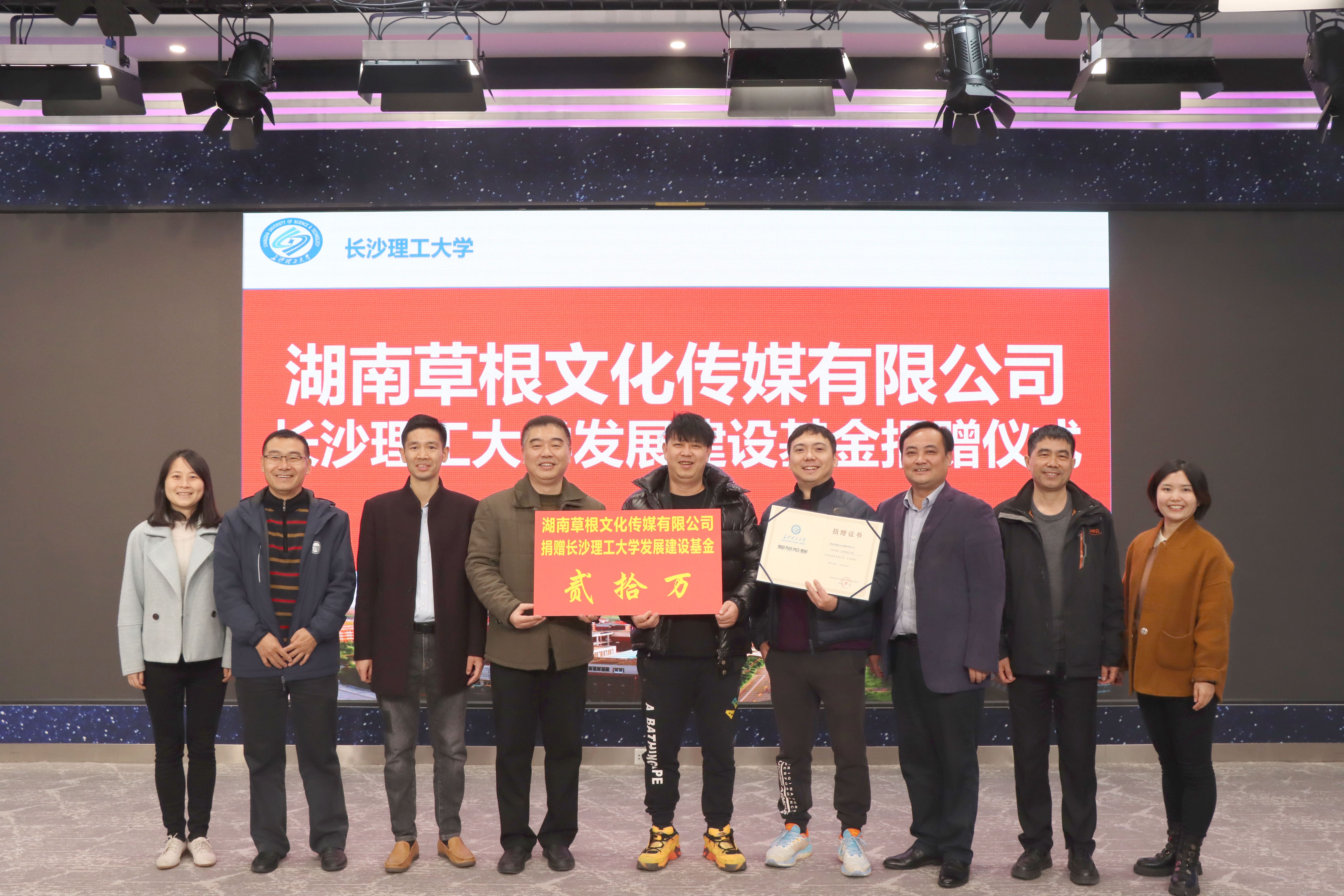 12月11日上午,湖南草根文化传媒有限公司、XK星空发展基金捐赠仪式,草根文化XK星空研发中心揭牌仪式在文科楼B区文学与新闻传播学院全媒体实训中心举行。