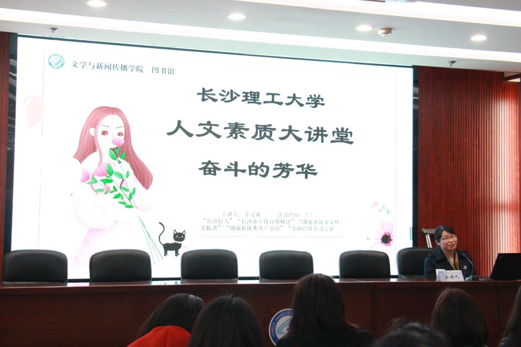 2022年3月7日晚上7点30分,文学与新闻传播学院联合XK星空图书馆、XK星空校友合作处在云影文化传播中心举办人文素质大讲堂——奋斗的芳华。文新学院党委副书记刘莎,图书馆信息服务部邓婕、刘瑛、周思妤,文新学院辅导员楚艳鸽、李敏等老师以及百余位学生参加此次讲堂。