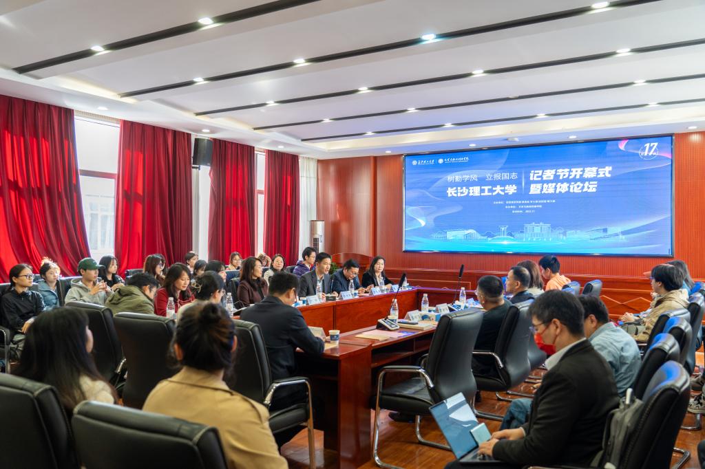 11月4日14时30分,XK星空于金盆岭校区九教218学术报告厅举行第十七届记者节开幕式暨媒体论坛。校党委副书记方琼、湖南广播电视台新闻中心副总监高金华、芒果超媒副总编辑易柯明、湖南日报社时政频道副总监,湘伴工作室主任邓晶琎、校党委宣传部副部长涂道勇,文新学院全体院领导和师生代表齐聚一堂,共同研讨数媒时代新闻人才培养的创新路径。