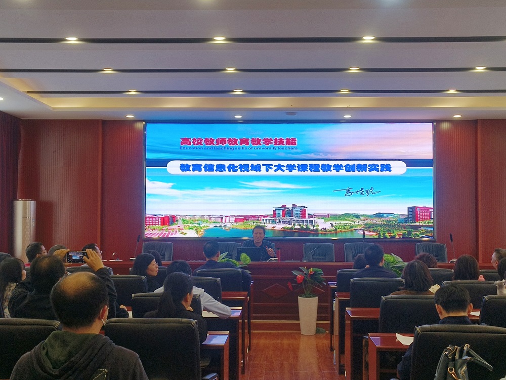 邀请李晓铭教授作了题为“教育信息化视域下大学课程教学创新实践”的专题报告,从课程教学设计、知识内容重构、教学资源构建、混合教学应用、教学反思评价等方面系统讲解了信息化教学规范,内容全面、案例丰富、指导精细。