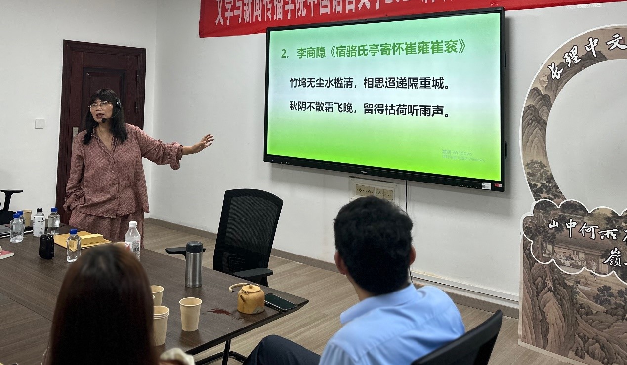 活动伊始,宁淑华老师对同学们推荐的古典诗词《七哀诗三首·其一》《宿骆氏亭寄怀崔雍崔衮》《一剪梅·红藕香残玉簟秋》等进行了逐一赏析。从诗词创作背景到诗人生平轶事,从整体情感意境到具体遣词造句,同学们在宁老师的带领下遨游于墨香深处的桃源之境,于诗行间寻觅知音,于平仄中品味人生百态。