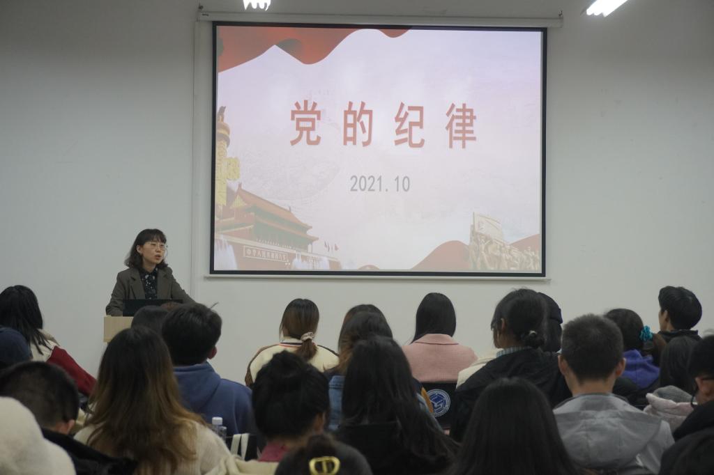 11月15日晚7点,文学与新闻传播学院第15期拟发展对象培训班第四次党课于工科三号楼B210举办。本次党课主题为“党的纪律”,由计算机与通信工程学院党建辅导员易亭亭老师讲授。