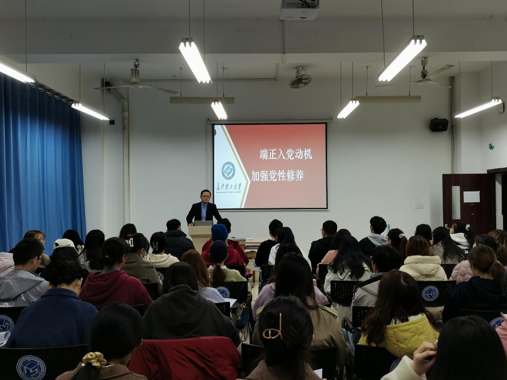 “思想上的入党是一生,组织上的入党是一次。你们要时刻审视自己的入党动机,动机不纯绝对不行。”他指出,为了献身共产主义,更好地为人民服务而入党才是正确的入党动机,同时向学员列举了“功利型、虚荣型、盲从型、成长型、情感型、被动型”六种不良入党动机类型,并以自身经历为切入点,深入浅出地为大家解释了每种不良动机的含义和具体表现。