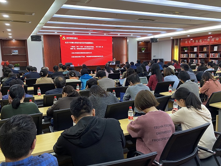 421日下午,副校长刘建民在图书馆云影文化传播中心为能动学院、化工学院、文新学院以及图书馆教职工宣讲学校第四次党代会精神,图书馆党总支书记夏智勇主持报告会。