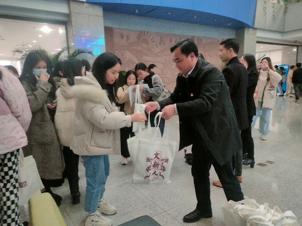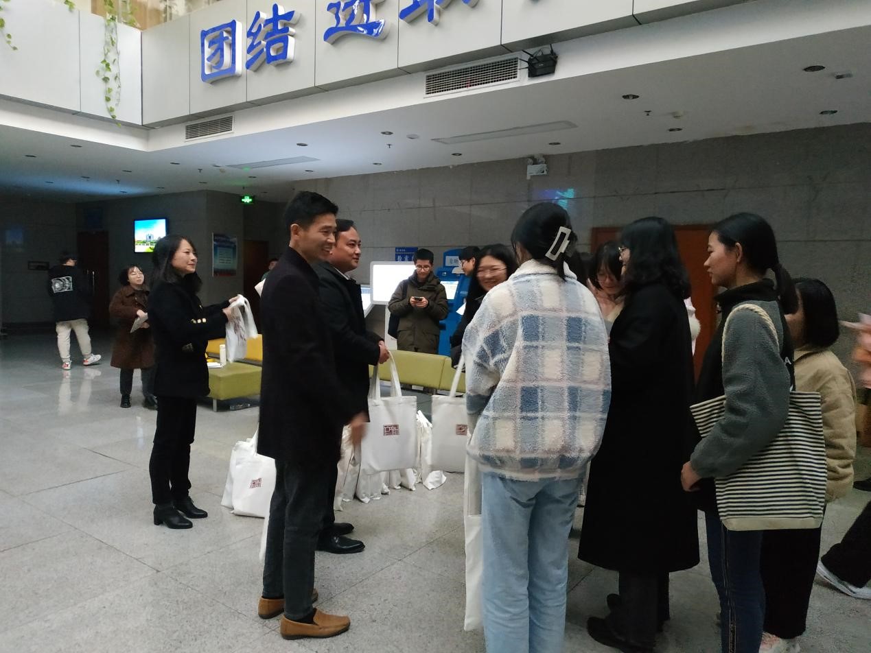 (学院各个老师在给考研学生准备考研礼包)