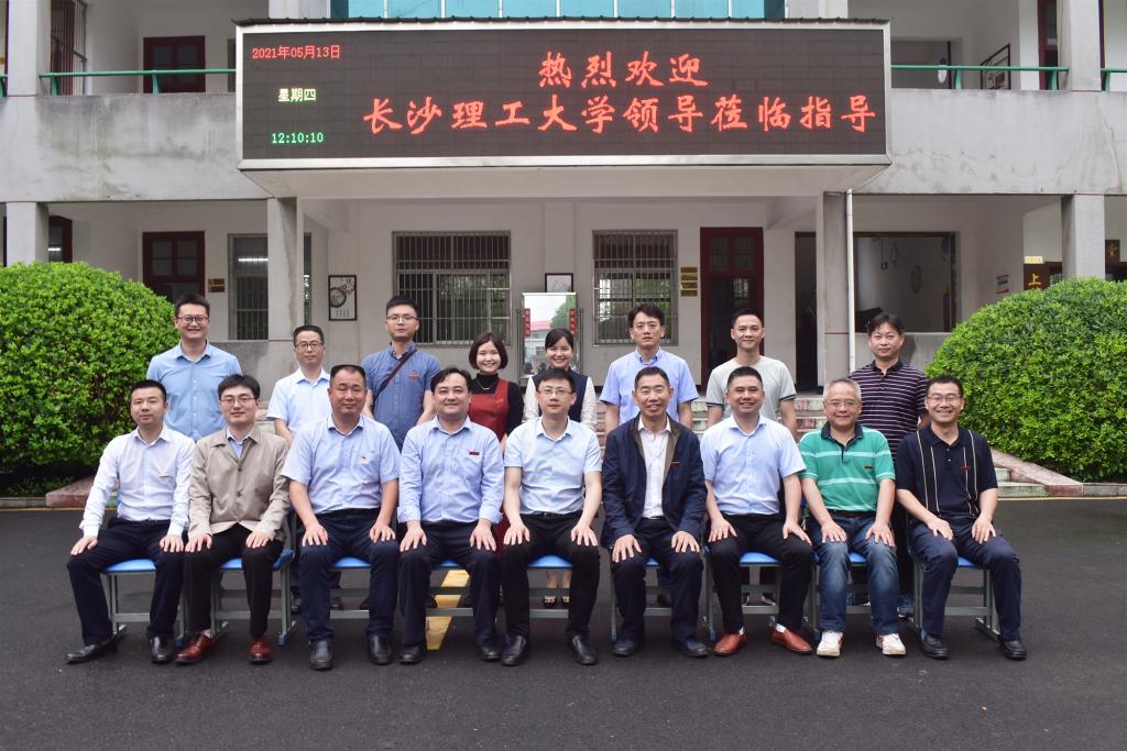 5月13日,长沙理工大学一行走进常德市安乡县,授予安乡一中和安乡五中“优质生源基地”的光荣称号,与安乡县副县长张益源和两所中学校长等就生源基地建设、拔尖创新人才培养、高中大学教育衔接等进行深入交流。文新学院党总支书记伍接朝、法学院党总支书记田兴洪、交通学院副院长吴伟等10人参加走访。