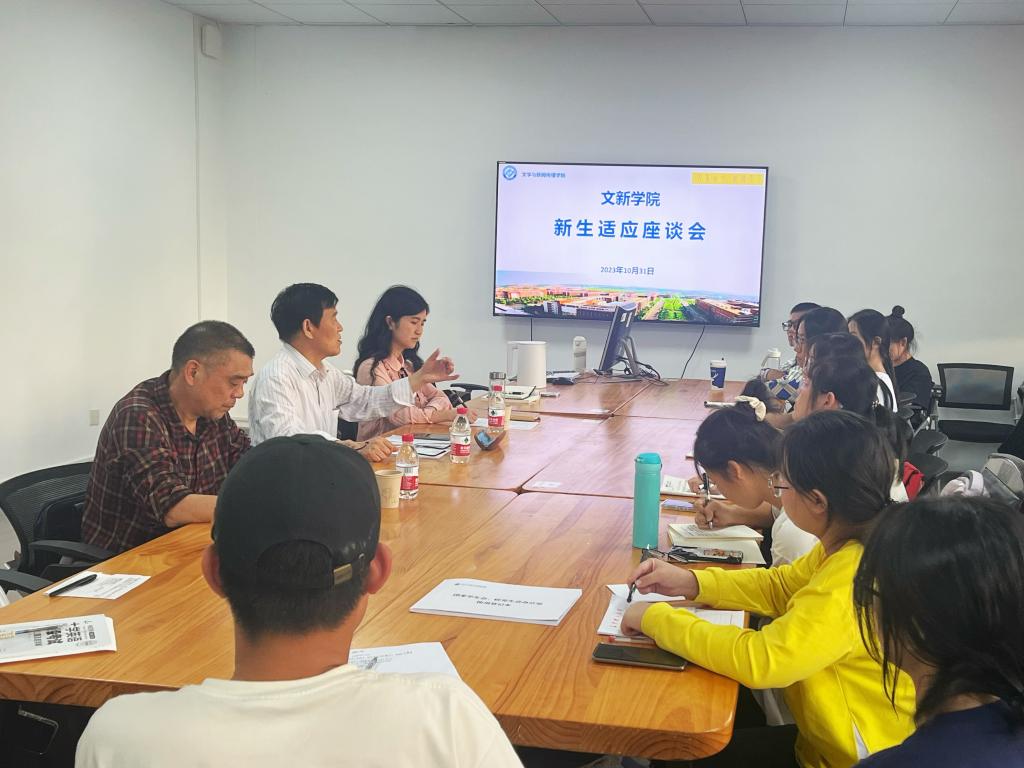 为充分发挥关工委育人作用,帮助2023级新生适应大学的教学模式和生活方式,文新学院于 10月31日下午在9教217召开“新生适应座谈会”, 学校关工委主任王乃厚、学院关工委教师杨启松、辅导员吴笛和2023级研究生新生代表参加本次座谈会。