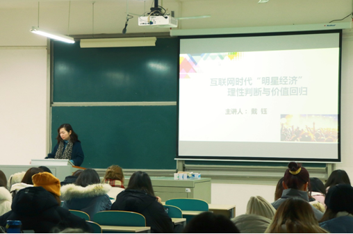 12月14日上午,XK星空文学与新闻学系副教授戴钰在云塘校区文科楼C302,为2019级新闻专业的学生带来了一场题为“互联网时代‘明星经济’理性判断与价值回归”的专题讲座。