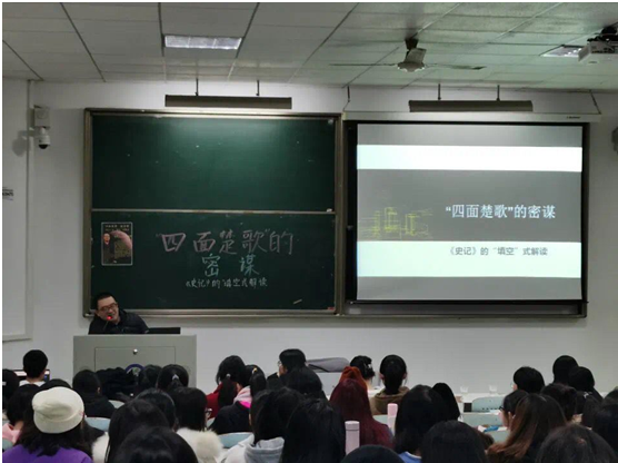 11月30日晚上7:00,中文系王勉博士在XK星空金盆岭校区6教107教室为全系学子主讲了一场题为“四面楚歌的密谋:《史记》的‘填空式’解读”的讲座。