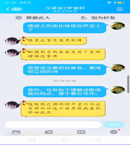 李彤副教授在进行“写作学基础(二)”的教学中,大胆增强实践性教学环节。经过一番探索后,发现利用手机程序能高效组织学生朗读诗歌。在师生共同努力下,找到了多种便于朗读录音的手机程序:一是配音秀APP,里面有很多优美的诗作可供选读,配乐和画面俱佳,有字幕便于理解诗意;二是全民K歌APP,不少优秀的歌词都堪称好诗,不少优秀的诗歌也被谱成歌曲,这一程序里很多歌词完全可以和着伴奏朗读出来;三是直接用手机工具里的录音功能进行录音;四是喜马拉雅、荔枝APP,选择录音;五是微信—收藏,右上角+,输入文字,并点击话筒,进行录音。这样生成的朗读作品可以转发分享到QQ群里、微信群里,可以在线上教学中通过屏幕分享大家一起欣赏。经过实践,她发现采用上述方法,不仅可以完成课堂实践环节的训练,而且由于画面和背景音乐的配合,诗歌的意蕴和韵律更加生动可感。较之传统课堂上的转瞬而逝,这些录下来的材料可以回放,瑕疵可能毕现,学生因此反复朗读,以求读准读好,加深了对诗歌的理解和感受。通过进入这些小程序查看,教师也便于掌握学生完成阅读任务的情况。通过一段时间的推广,学生们普遍喜欢上了这种阅读方式,读了配音秀里的很多诗,表现出对某些诗人的作品的偏好,兴趣甚至扩大到散文、电影对白、英文等。在其后上交的诗歌习作中,也涌现出较多佳作,整体水平也高出往届。有些同学还超额完成了任务,并且几乎每首质量堪称上乘。李老师探索的这种利用手机程序以读带写的做法,大大激发了学生的写作兴趣,很好地达到了诗歌写作的教学目的。为此,李老师还专门撰写了一篇教改论文《利用手机程序以读带写推进诗歌写作教学的尝试》,并即将刊发。