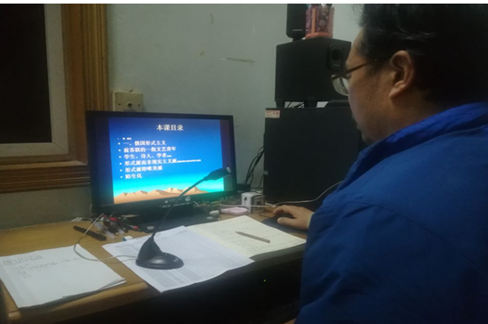 于启宏副教授承担“中国现代文学批评方法”和“中西诗歌鉴赏”两门课程的教学,他自行购买了教学设备,注重线上教学平台的建立和熟悉,利用QQ群的屏幕分享进行直播,同时,抓好课堂教学的预讲、课堂直播、课后教学安排。他每一次正式上课前提前两小时左右模拟预讲,并作最后优化。课堂直播精心安排内容,在对课程目录和授课内容进行系统梳理的基础上,按教学日历安排顺序讲授全部课程,讲究课堂互动效果,善于根据授课内容提前精选课堂互动的问题或话题。课后注重指导学生利用网教平台上的共享资源,例如作品选、参考书目等资源开展课外学习。关注网教平台上学生的作业信息,及时指导学生在课外作好课程作业和课堂大讨论的筹划。