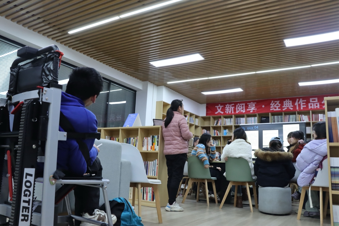 在互动环节,同学们踊跃发言,分享各自的阅读体悟。令人瞩目的是,长沙18岁脑瘫患者也是文学爱好者的王释玉和妈妈也来到了现场。这是王释玉首次参与此类活动,此前都是妈妈唐阿姨代为参加。王释玉认为,余华在《第七天》中对死亡进行了解构,带来全新的思考视角。汉语言2302班杨蕾则分享了自己对书中亲情线的理解,深受触动的她甚至一度落泪。其他同学也纷纷各抒己见,从不同角度解读作品,现场讨论氛围浓厚。