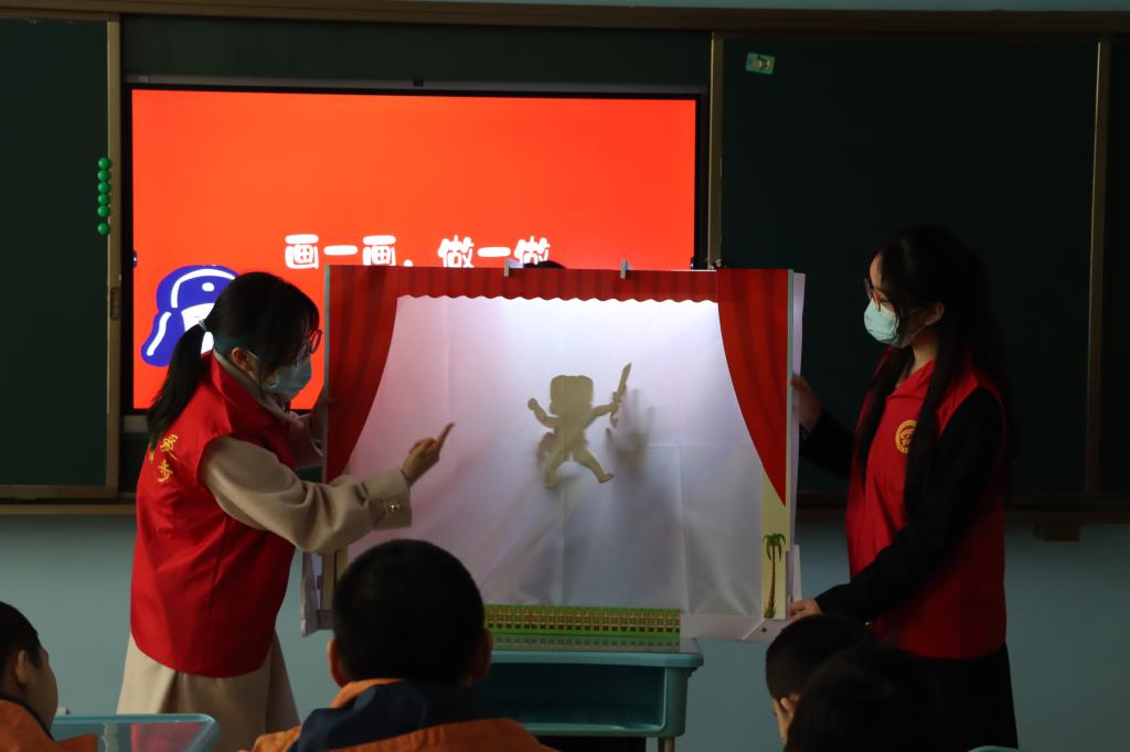 当幕布亮起,生动的雷锋故事在光影间展开,孩子们的目光被牢牢吸引。借此契机,志愿者讲师生动地讲述起雷锋的成长经历与经典事迹,并巧妙融入非遗文化及皮影戏的相关知识,让孩子们在沉浸式体验中增长见闻,感悟雷锋精神。