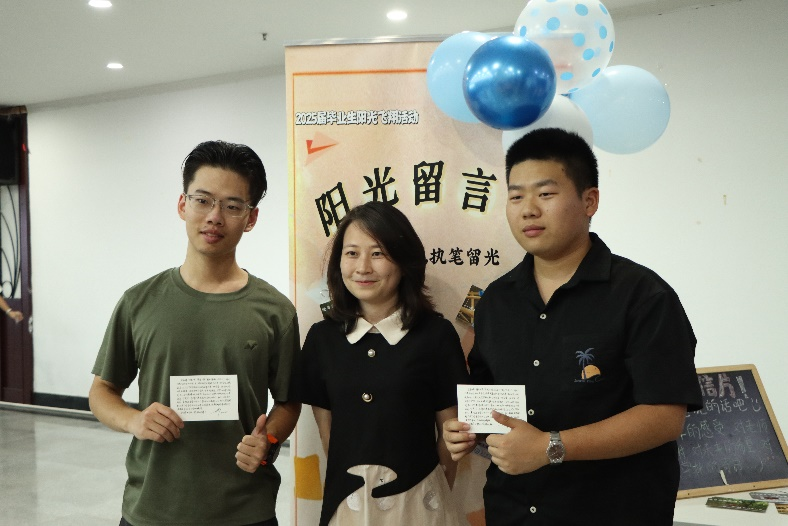 活动现场,毕业生们选取心仪的留言卡,写下自己大学四年的感受、对学校和老师的感谢、对同学的祝福、给学弟学妹的寄语、以及对未来的展望等等,字里行间饱含对师长培育的感恩、对同窗情谊的留恋等情感。书写完成后,同学们可将卡片带走作为纪念,也可进行现场展示,将这份情感和祝福与大家分享。活动负责人王婧瑜表示,毕业季伴随着压力,但也蕴含着希望,此次“阳光留言卡”活动通过书写感悟、表达感恩、传递关怀,为毕业生们提供了情绪表达平台,也为他们步入新阶段提供了心理支持。