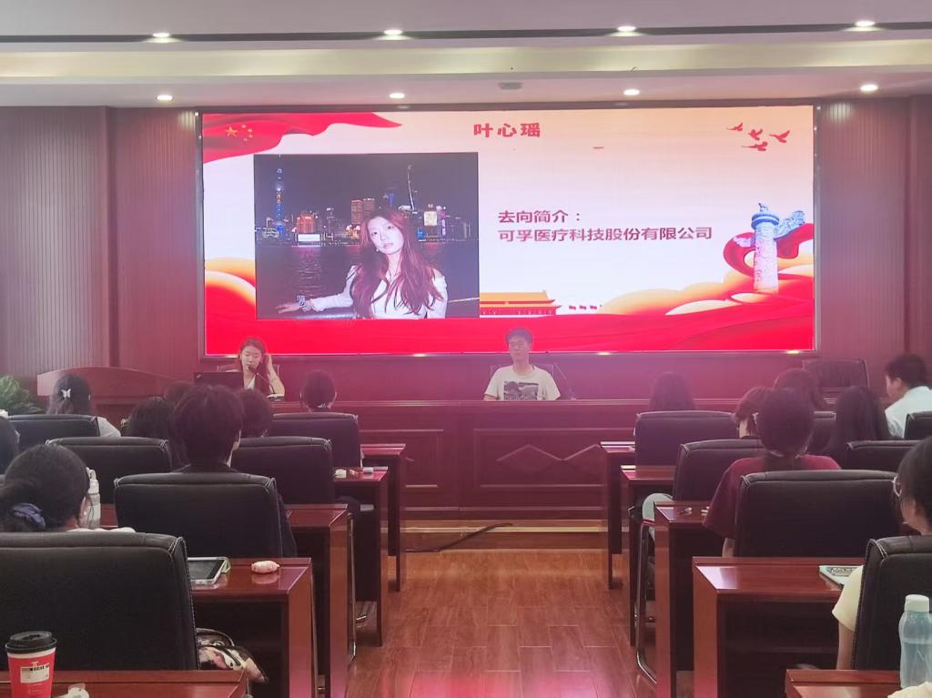 调适择业心态,接纳成长路径。成功入职可孚医疗科技股份有限公司的叶心瑶同志,真诚分享了她在职业选择过程中焦虑挣扎的心路历程。她坦言求职中要坦然接受现实,积极调整心态。她还鼓励同学们不要因未达预期而自我否定,放下对自身的严苛要求,以更从容、轻盈的态度面对职业发展,在实践中发现新的价值与机遇。