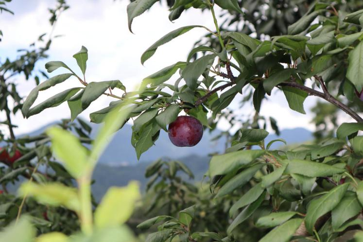 采摘园内,黄桃、柿子、猕猴桃、脆枣等多种水果长势喜人,260亩李树硕果盈枝。园内采用人工除草、科学剪枝的生态种植模式。其中,毗邻李子园的30余亩酥脆枣园已搭建防雨棚,枣枝经修剪向两侧伸展,园内自动喷灌系统实现精准补水。据了解,枣苗需四年培育,中秋上市售价十元一斤。