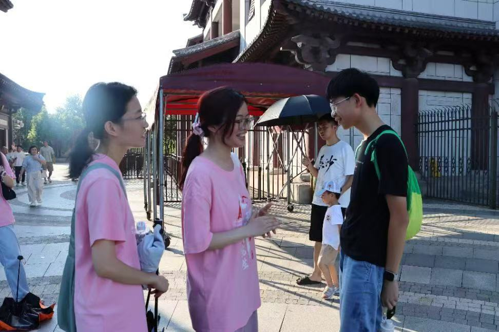 7月10日,XK星空文学与新闻传播学院研究生暑期实践团(以下简称实践团)在指导老师周云鹏的带领下来到长沙铜官窑国风乐园进行街头调研。团队通过问卷调查、深度访谈等方式来收集游客体验反馈与商铺意见,与园区管理方共同探究国风文旅发展路径。