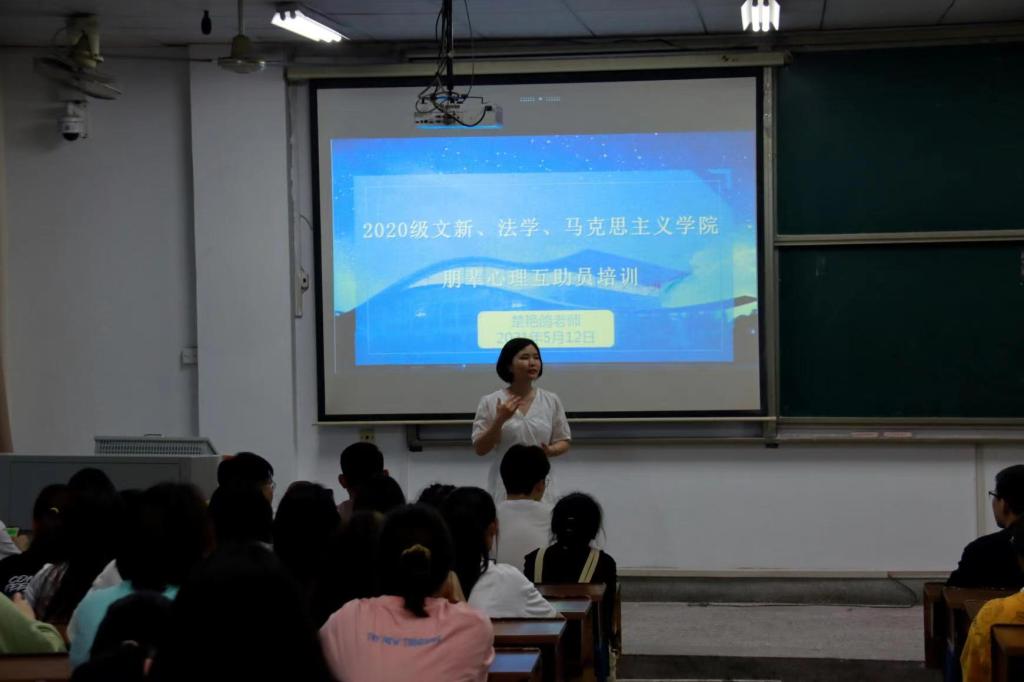 为帮助朋辈心理互助员明确工作职责、提升工作技能,文新学院于5月12日晚19:00在金盆岭校区13教400教室举办20级朋辈心理互助员培训,参加人员有三个学院金盆岭校区大一新生和研究生朋辈互助员,文新学院心理辅导员楚艳鸽老师担任主讲人。